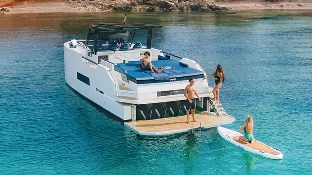 This is something extraordinary. A 50-foot yacht that is capable of flying at 50 knots thanks to its engines and hull design, as well as exterior and interior spaces you wouldn't expect.